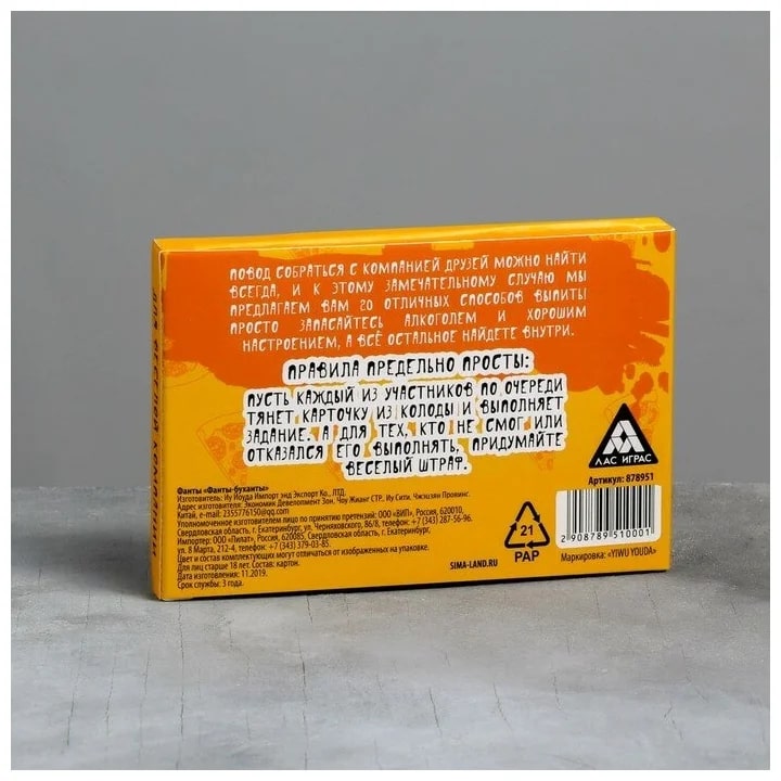 Купить игра для компании "фанты буханты" 20 карт от 100 руб. с доставкой до пункта выдачи в Няндоме. Интернет магазин ДекаМаркет. Оплата при получении.